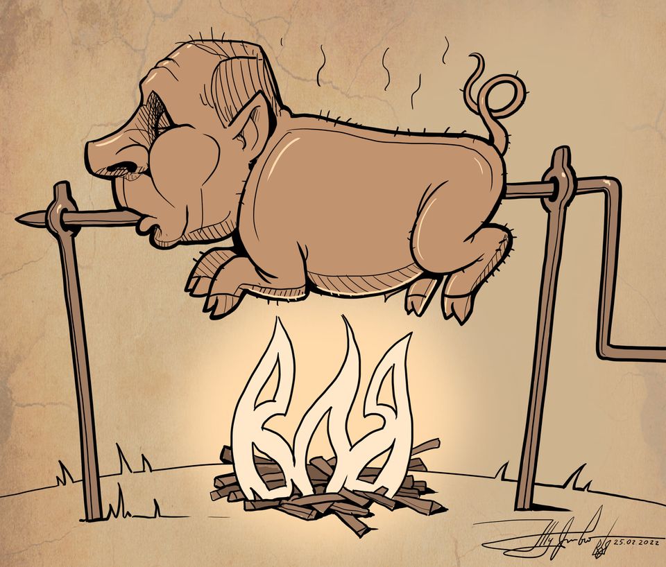 Description: Shish kebab on Victory Day! The president promised – I drew