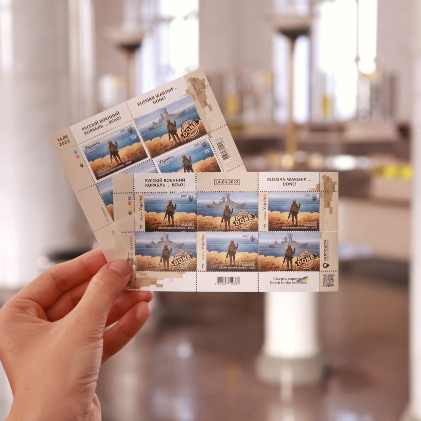 The stamp must be international so that everyone can send it to any country. The deadlines are short, because it’s very hard to stick it on a postcard.” - On 12 of April 2022 post stamps “Russian warship, go fuck yourself!” were put into circulation.